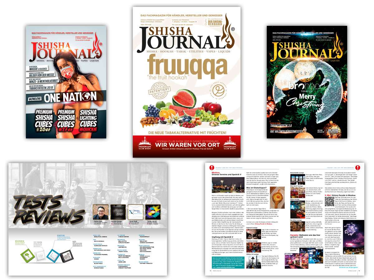 Seit 2013 sind wir zuständig für die Shisha-Journal, dem Fachmagazin der Shishaszene, und sind hier verantwortlich für Satz, Layout, Bildbearbeitung und die Anzeigenaquise.