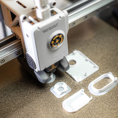 Moderne Produktion mit 4c Drucker (Tinte und Laser), 3D-Drucker, 60cm Schneideplotter und Fotobox für Produktfotografie.